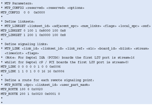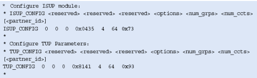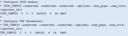 注意,這些不包括任何設(shè)置或定義信令板卡的命令,應(yīng)該象定義標(biāo)準(zhǔn)的單系統(tǒng)一樣定義。MTP_ROUTE <up_enable>參數(shù)為ISUP設(shè)置,在上例中用戶部分SI=5。