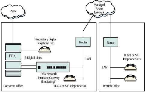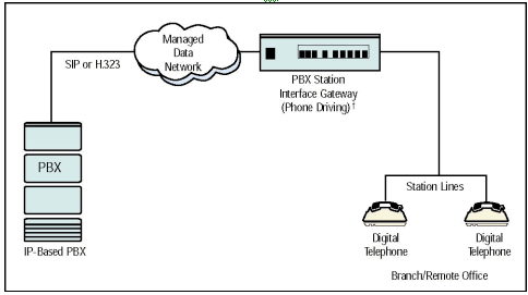 - 場(chǎng)景 2 - 把遠(yuǎn)端辦公室通過(guò)一個(gè)包交換網(wǎng)絡(luò)連接到總公司PBX系統(tǒng)上. 基本來(lái)說(shuō), 網(wǎng)關(guān)把數(shù)字電話功能擴(kuò)展到遠(yuǎn)程辦公室.